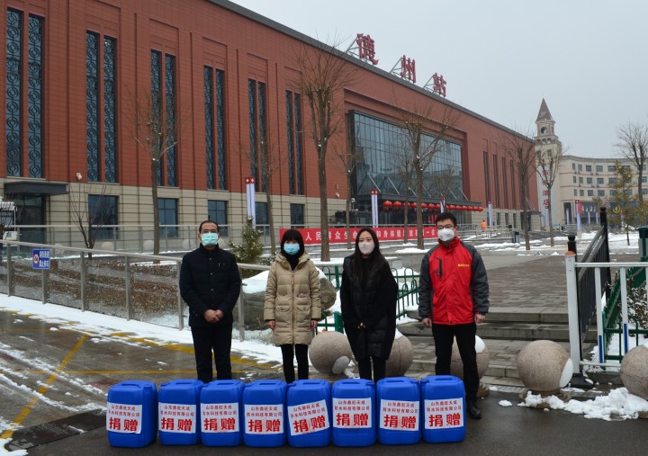 2月6日,德州市慈善義工聯(lián)合會聯(lián)合山東鼎旺天成防水科技有限公司,向火車站廣場管理中心捐贈了500公斤消毒液,助力站前廣場疫情防控工作。