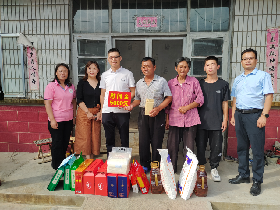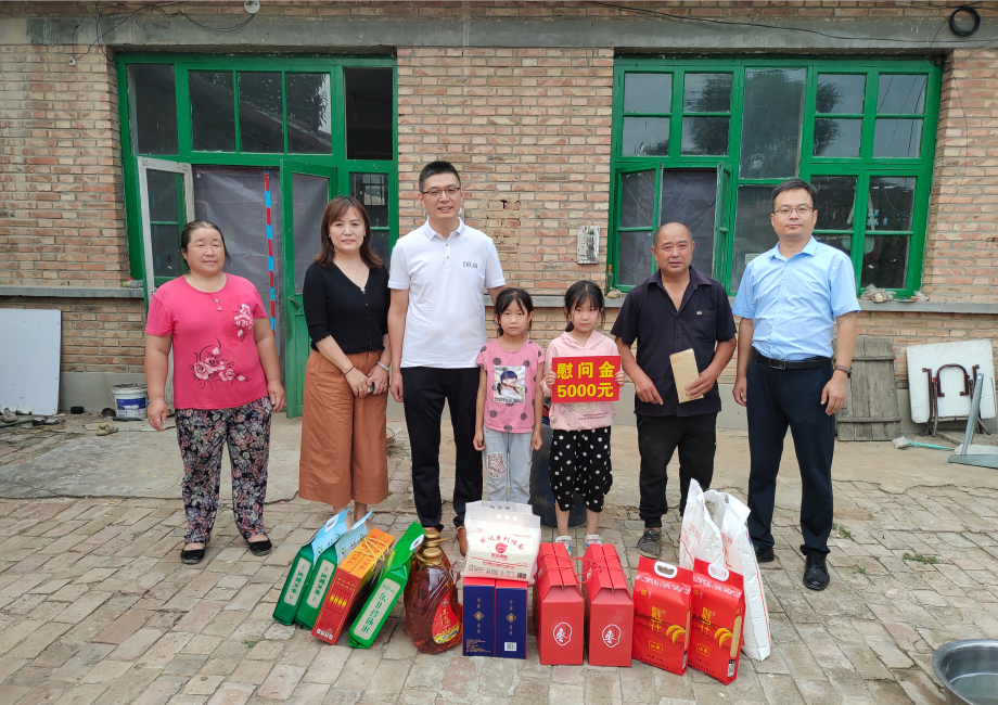 首先,我們驅車前往平原縣王杲鋪鎮(zhèn)甜北村徐天賜同學的家里。小天賜今年在康復中心讀小學六年級,他的爸爸常年服藥,臥病在床,生活不能自理,整個家庭僅靠63歲的爺爺和64歲的奶奶微薄的收入勉強維持,生活非常困難。當我們送上愛心時,天賜爺爺和奶奶激動地熱淚盈眶,當我們離開時,他們不住地挽留,三番五次地說:“走到這兒,一定要來家里吃頓飯。”